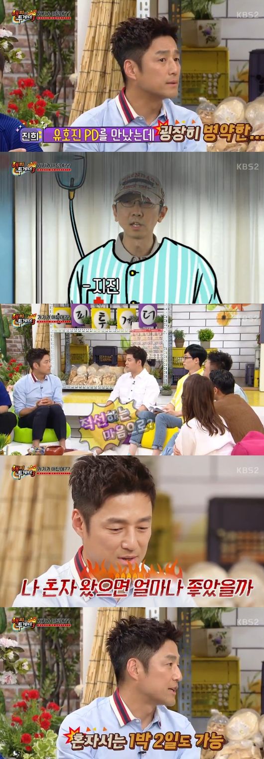 7일 방송된 KBS '해피투게더3'에는 새 예능 '거기가 어딘데'에 출연 중인 지진희, 배정남, 조세호가 출연했다. 지진희는 예능의 격전지인 금요일 11시대에 예능을 하게 된 것에 대해 "드라마 '미스티'로 선방을 했다. 이번에도 자신있다"고 말했다.