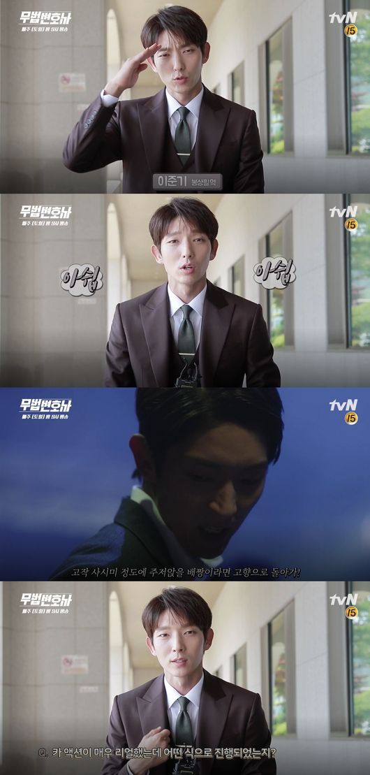 이준기는 8일 공개된 tvN 토일드라마 ‘무법 변호사’ 코멘터리에 출연해 시청자들의 궁금해하는 것을 속 시원히 풀어냈다.