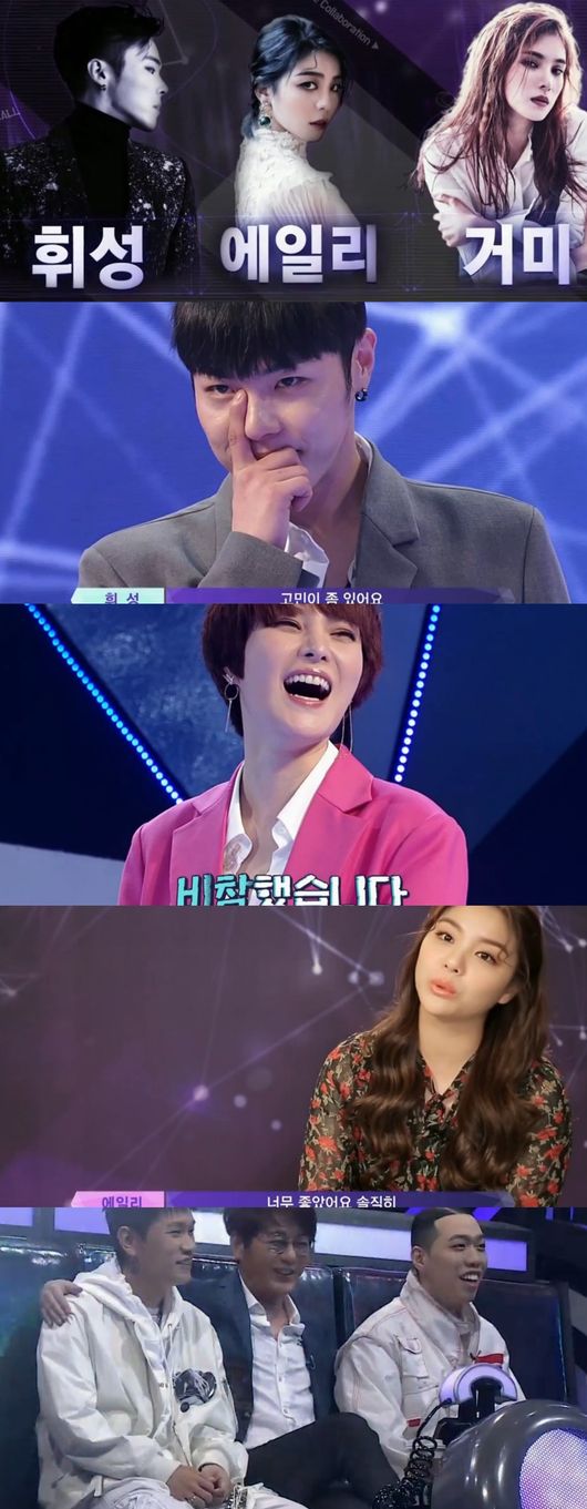 거미의 선택 역시 휘성. 거미는 휘성 에일리와 콜라보 팀을 이루게 됐다. 휘성은 "되게 최강 조합인 것 같다"고 말했다. 거미는 "마음이 편해"라고 전했다.