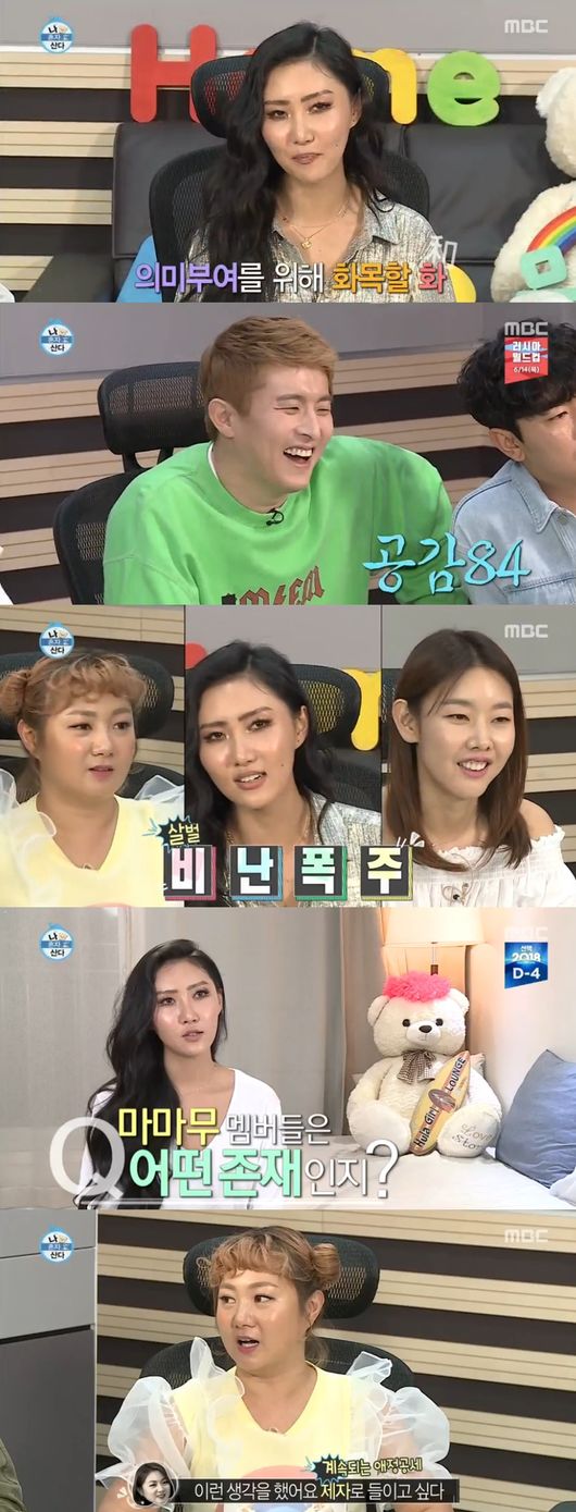 비글미 뽐낸 마마무와 화사를 보며 기안84는 "지금까지 중 가장 리얼했다"면서 화사 84를 언급, "여자도 나처럼 살 수 있구나 싶었다"고 해 웃음을 안겼다. 박나래는 "일단 내 과다"라면서 "제자로 들이고 싶다"며 후계자로 지목해 웃음을 안겼다.