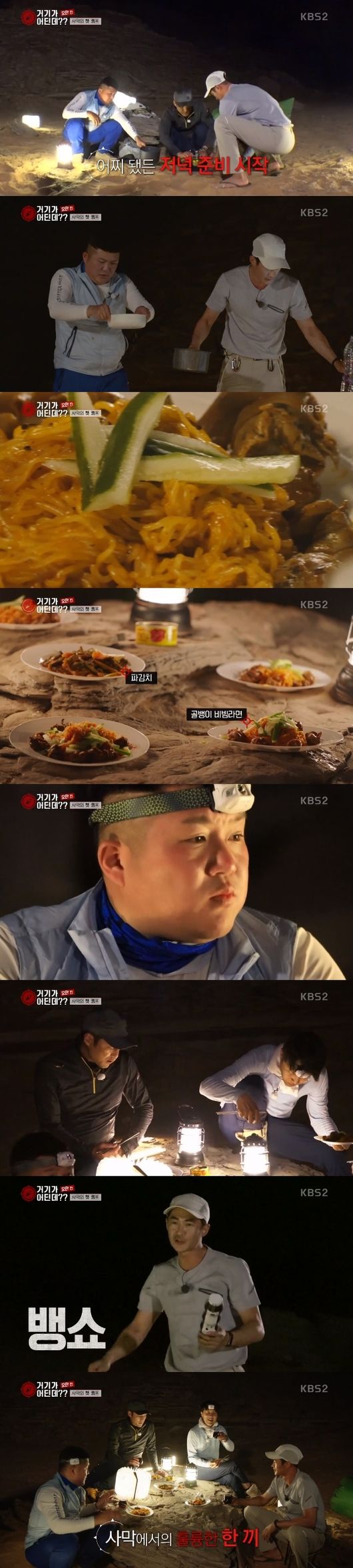 '거기가 어딘데' 막내 배정남의 정성 가득한 음식이 사막 한가운데서 첫날밤을 보낸 탐험 대원들을 행복하게 했다.