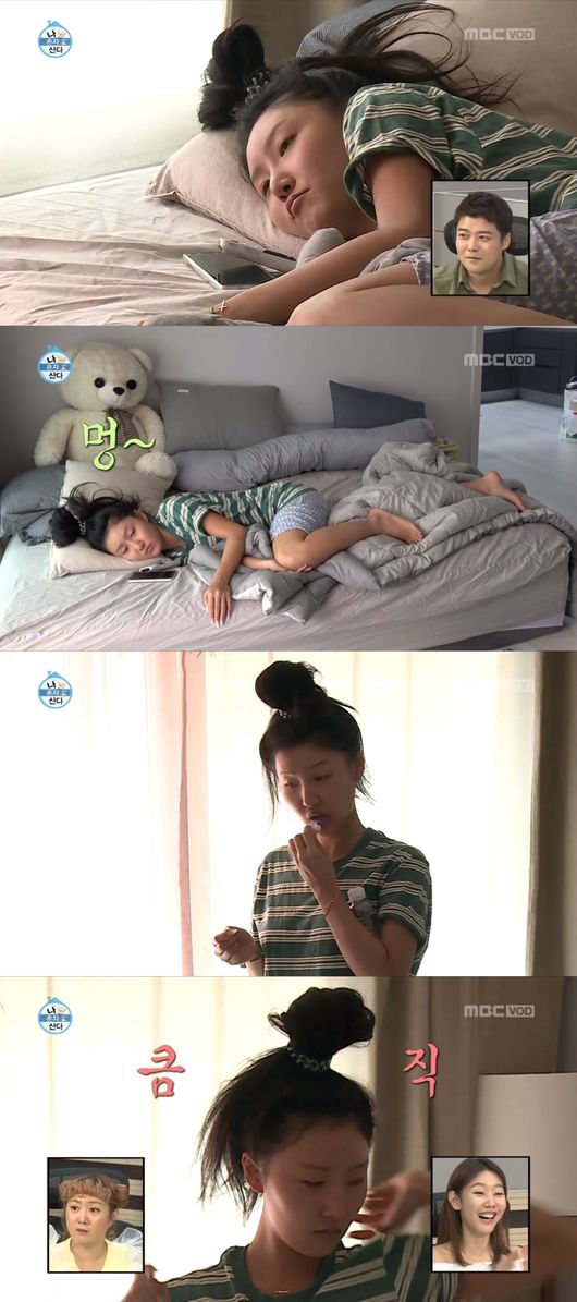 그간 ‘나 혼자 산다’에서 봤던 여자 연예인들은 아침에 일어나면 드라마를 연상케 하는 장면이 펼쳐지곤 했는데 화사는 혼자 사는 여자들의 모습과 많이 닮아있었다. 비몽사몽 한 상태에서 침대에서 일어나지 않고 그대로 TV를 틀고 보는 모습이 그랬다. 이에 박나래는 “느낌이 우리 할머니 같다”고 했다.