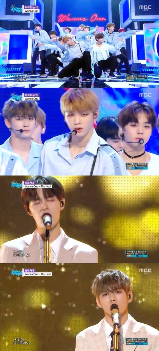 9일 방송된 MBC '쇼 음악중심'에서는 워너원이 '켜줘' 무대를 선보였다. 옹성우 이대휘 유닛 더힐은 '모래시계' 무대를 최초 공개했다.