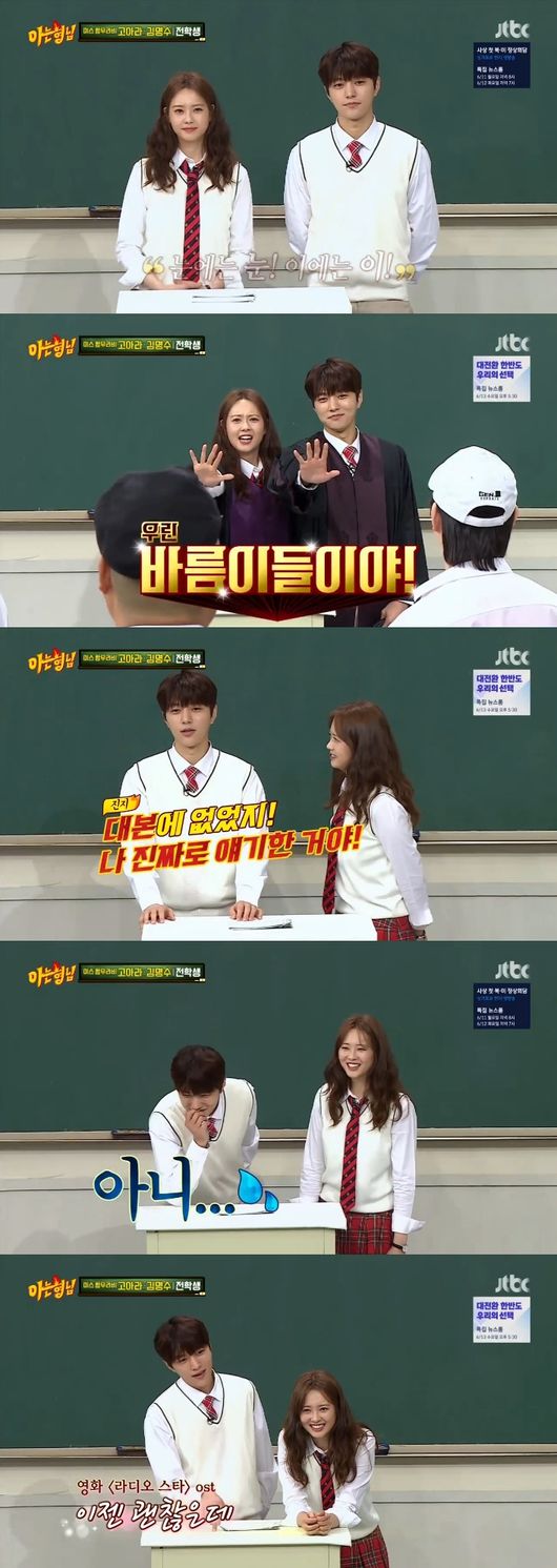 9일 오후 방송된 JTBC 예능 ‘아는 형님’에는 월화드라마 ‘미스 함무라비’의 고아라와 김명수가 출연했다. 두 사람은 이 드라마에서 각각 좌배석판사 박차오름, 우배석판사 임바른 역을 맡아 연기 호흡을 맞추고 있다.
