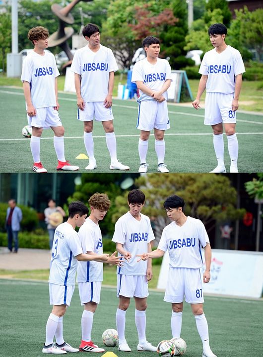 사진에는 축구 레전드 사부를 맞아 'JIBSABU(집사부)' 유니폼을 맞춰 입은 이승기, 이상윤, 육성재, 양세형의 모습이 담겨있어 시선을 집중시켰다.