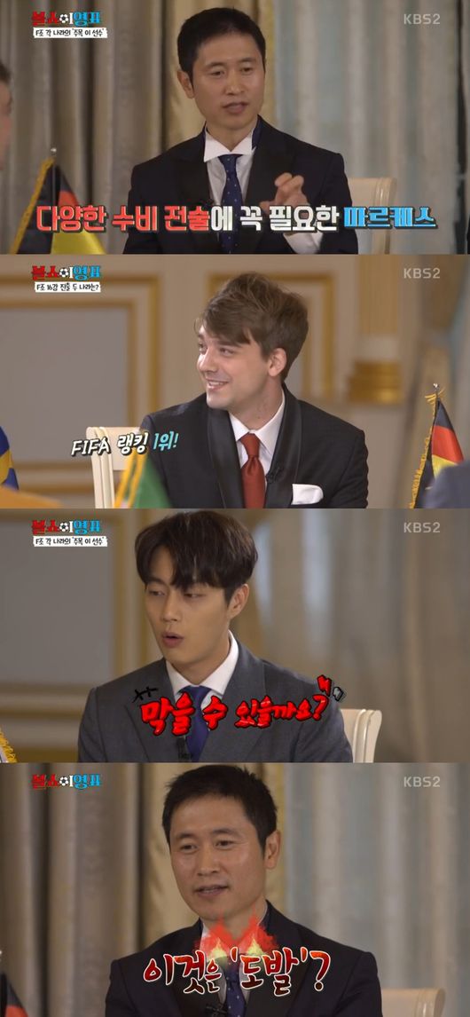 이때 독일대표 닉클라스는 "막을 수 있을까요?"라고 조심스럽게 물었고, 이에 이영표와 윤두준이 발끈, 자극을 받은 듯 닉클라스를 쳐다보는 모습이 그려졌으며, 월드컵 전부터 살벌한 신경전과 기싸움이 오고가는 모습이 다음 편에 대한 궁금증과 기대감을 증폭시켰다.