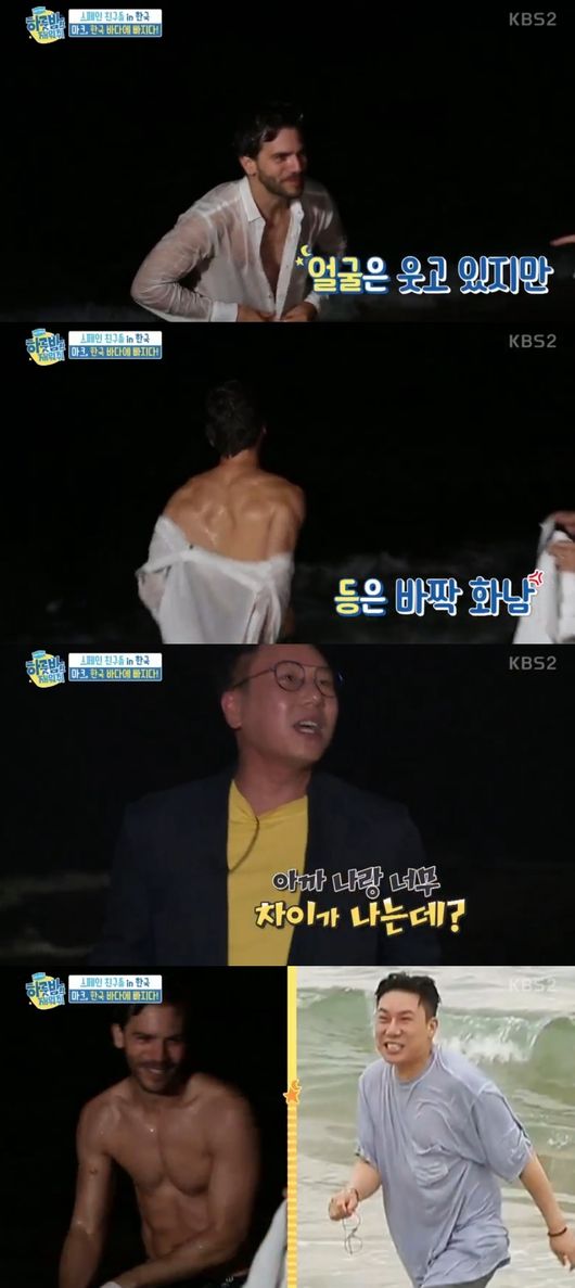 이어 바다에 도착한 친구들. 친구들은 가위 바위 보로 입수자를 결정하는 게임을 했다. 끝에 마크와 이상민이 남았고, 두 사람은 무승부를 거듭하다 이상민이 당첨됐다. 이상민은 고민하다 바다에 뛰어들었고, 진짜 뛰어들지 몰랐던 스페인 친구들은 놀라워했다.