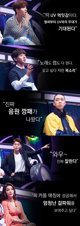 동방신기의 유노윤호일 것이라고 추측된 ‘눈빛으로 제압하는 퍼포먼스 킹’은 황치열, UV와 한 팀을 이룬 김종국으로부터 “딱 UV 먹잇감이다. 벌써부터 UV와의 무대가 기대된다”는 평을 받았다. 황치열은 ‘옥구슬 보이스 싱어송라이터’를 향해 “노래도 랩도 다 된다. 갖고 싶다 저런 목소리”라며 감탄했고, 비와이는 “진짜 음원 깡패가 나왔다”며 ‘잘생긴 애 옆에 귀여운 애’의 정체를 확신했다.