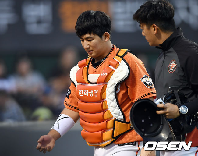 최재훈은 올 시즌 몸에 맞는 볼로 손목과 머리를 다쳤고, 홈 충돌로 머리에 충격을 입기도 했다. 크고 작은 부상 속에 이날도 손가락을 다치며 경기에 일찍 빠졌다. /waw@osen.co.kr
