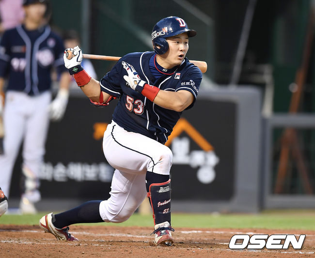 두산이 3회초 추가 득점에 성공했다. 선두 김인태가 좌중간 2루타를 터뜨린 뒤 최주환이 우전 적시타로 연결하며 스코어를 3-0으로 벌렸다.
