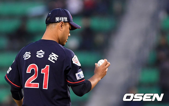 마운드를 먼저 내려온 것은 박세웅이었다. 박세웅은 5회말 볼넷 2개와 사구 1개로 만든 무사 만루에서 김동엽에 좌전 적시타를 허용하며 강판됐다. 그리고 두 번째 투수로 마운드에 오른 투수는 송승준이었다.