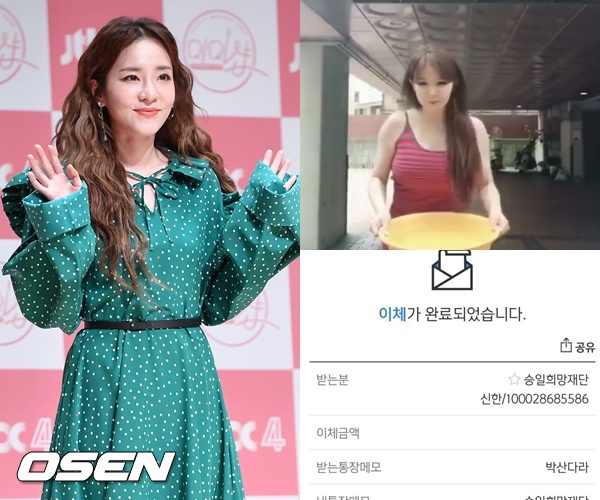걸그룹 2NE1 출신 산다라박이 박봄의 지목을 받고 아이스버킷챌린지에 동참했다.