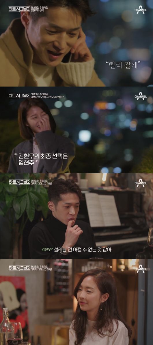하지만 예상과는 달리 김현우는 오영주가 아닌 임현주를 선택했다. 김현우는 오영주와 마지막으로 밥을 먹을 때 “현주에게 설레는 건 어쩔 수 없는 것 같다”라며 진심을 털어놓기도 했다. 때문에 김현우가 임현주를 선택할 거라는 건 어느 정도 예상할 수 있었고 ‘하트시그널2’ 예측자들 모두 김현우의 최종선택을 임현주라고 예상, 그대로 결과가 나왔다.