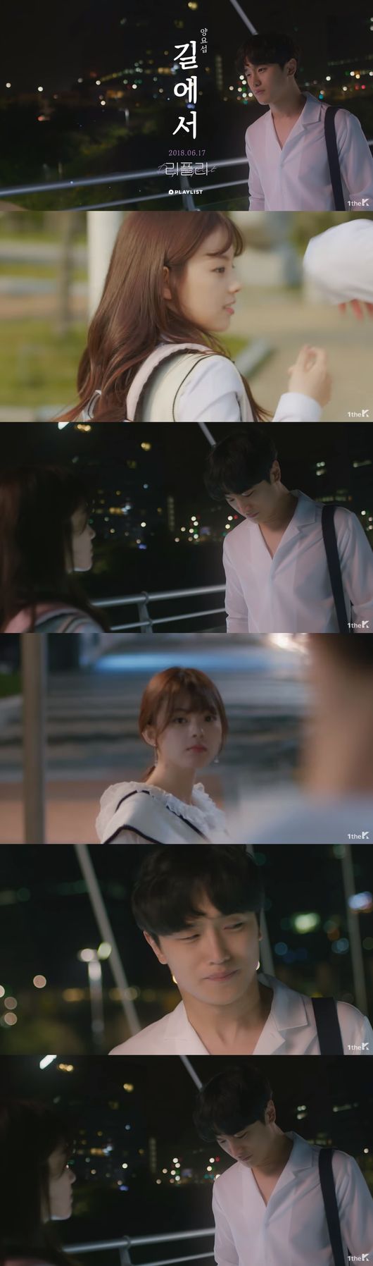 16일 오후 6시 양요섭이 부른 ‘리플리’ 첫 번째 에피스드 곡 ‘길에서’ 티저 영상이 유튜브 원더케이 채널에 게시됐다. 게시된 영상 속에서는 웹 드라마 ‘열일곱’의 주인공 김세리(유혜인 분)와 지은우(김도완 분)이 서로 다리에서 마주치는 모습 뒤로 양요섭의 분위기 있는 목소리가 더해졌다.