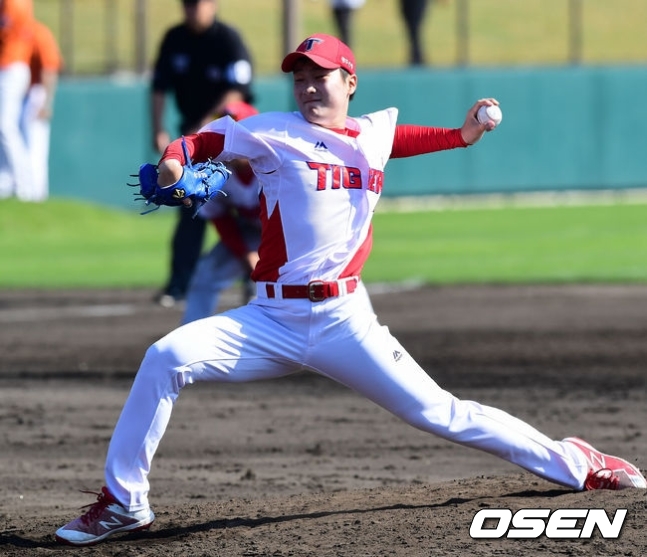 KIA가 7회말 동점 점수를 내주면서 하준영의 데뷔전 승리를 불발됐다. 그러나 147km의 배짱있는 모습은 앞으로의 활약을 기대하기에는 충분했다. /bellstop@osen.co.kr