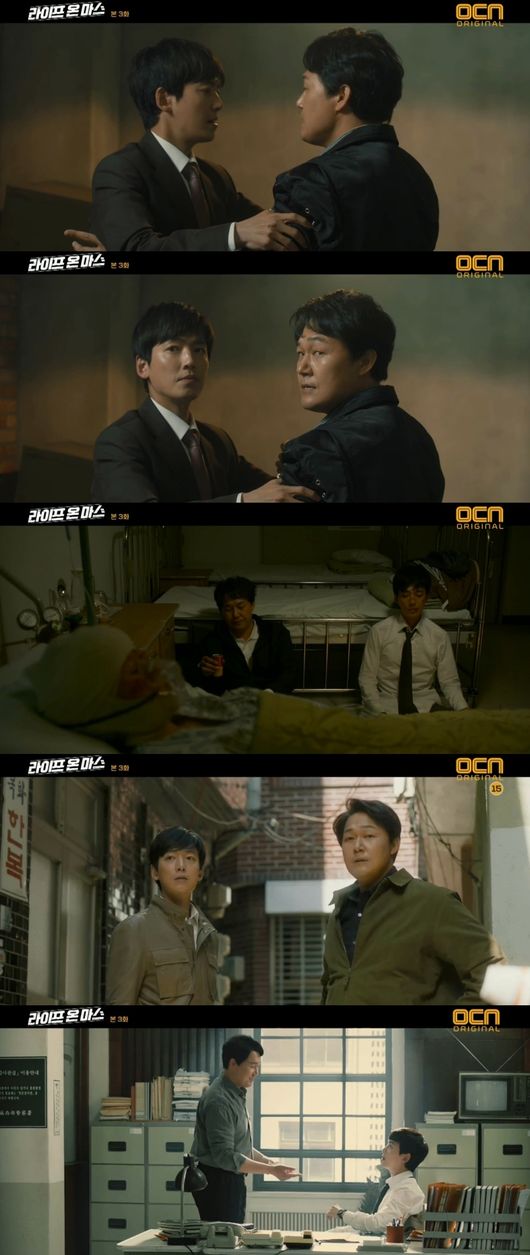 16일 방송된 OCN 토일드라마 ‘라이프 온 마스’(극본 이대일, 연출 이정효)에서 한태주(정경호 분) 형사와 강동철(박성웅 분) 형사가 한 팀을 이뤄 범죄 용의자들을 검거하는 과정이 그려졌다.