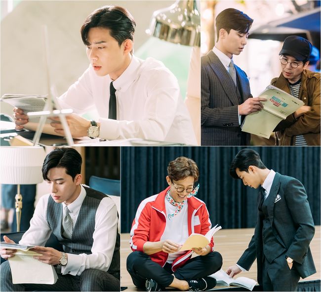 tvN 수목드라마 '김비서가 왜 그럴까' 제작진은 17일 대본을 보고 있는 박서준을 담은 비하인드 스틸을 공개했다.