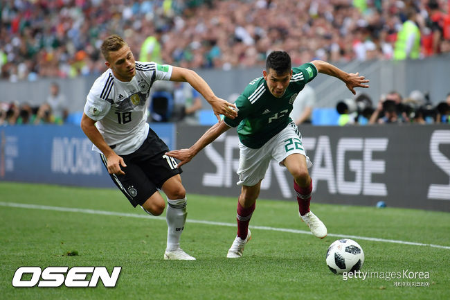 7연속 16강에 도전하는 멕시코가 '디펜딩 챔프' 독일을 잡는 이변을 연출했다. 멕시코는 18일(한국시간) 러시아 모스크바의 루즈니키 스타디움서 열린 2018 러시아 월드컵 F조 조별리그 1차전서 전반 로사노의 선제 결승골에 힘입어 독일을 1-0으로 제압했다.