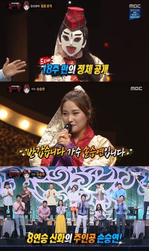 파죽지세의 기세로 8연승에 성공했지만 아쉽게 9연승의 문턱을 넘지 못한 동방불패의 정체는 가수 손승연이었다. ‘가수들의 가수’로 불리며 놀라운 가창력으로 늘 화제를 모아온 그의 등장에 모두 뜨거운 환호와 격려를 보냈다. 무려 18주 만에 가면을 벗고 정체를 공개한 손승연은 “지금 성대에 혹이 나서 재활치료 중이다. ‘복면가왕’에 출연하며 내 스스로를 시험하는 시간을 가졌다”며 “그동안 ‘동방불패’로서의 모든 무대들을 사랑해줘서 감사하다”는 소감을 밝혔다.