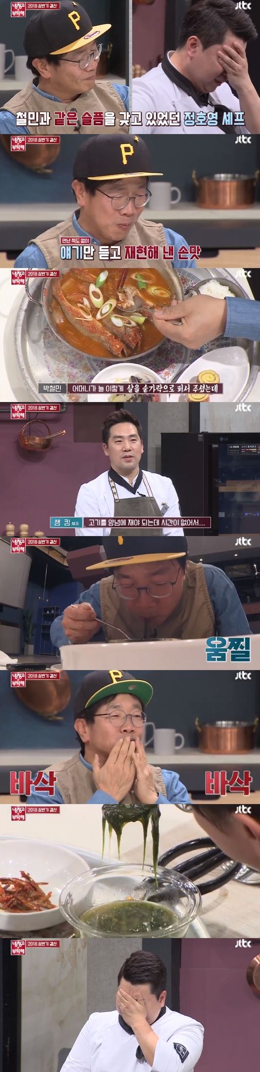 박철민은 샘킴과 정호영의 요리를 먹으며 "어머니의 손맛이 난다" "어머니가 한 그대로의 맛"이라며 눈물을 쏟았다.
