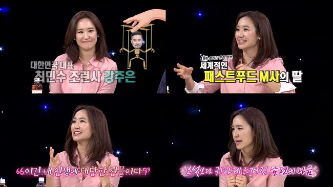 강주은은 캐나다에서 보낸 대학 시절 당시 명문가 자제들만 들어갈 수 있는 역사적인 클럽 출신임을 밝혔다. 특히, 클럽에 뽑힌 이유로 “헤어스타일”을 꼽아 MC들을 어리둥절하게 만들었다. 이내 MC들은 당시 강주은의 상상을 초월한 헤어스타일을 보며 입을 다물지 못했다는 후문이다. /parkjy@osen.co.kr
