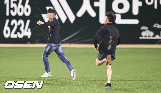 시즌 첫 경기가 청주구장에 작은 소동이 벌어졌다. 남성 관중 2명이 그라운드에 난입한 것이다. 두 남성은 경찰에 신고됐고, 즉시 인계될 예정이다.