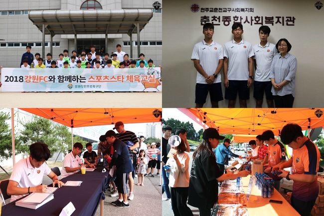 또 19일은 이호인, 홍지윤, 최준혁 등 신인 선수들이 춘천 종합사회복지관을 찾아 봉사활동을 진행했다. 선수들은 봉사활동이 끝나자마자 인근 봄내 초등학교를 방문해 오후 늦은 시간까지 축구클리닉을 열고 아이들에게 축구를 가르쳤다.