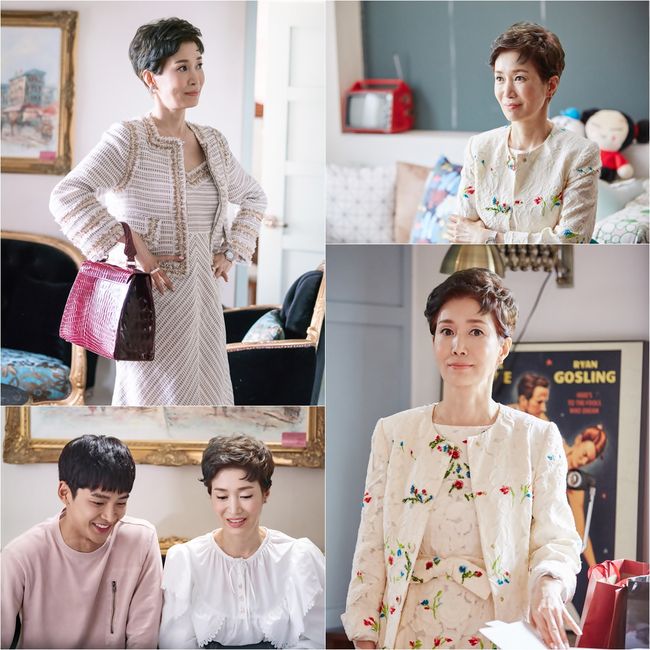 공개 된 현장 비하인드 사진에서도 역시 귀여운 면이 엿보인다. 카메라를 응시하며 사랑스러운 미소를 지어보이는 모습은 캐릭터와 100%의 싱크로율을 자랑하기도. 또 다른 사진 속 나영희는 허리에 손을 올리고 자신감 넘치는 표정으로 시선을 사로잡는가하면 극 중 아들 위진(로운)과 함께 쉬는 시간을 즐기는 모습이다.