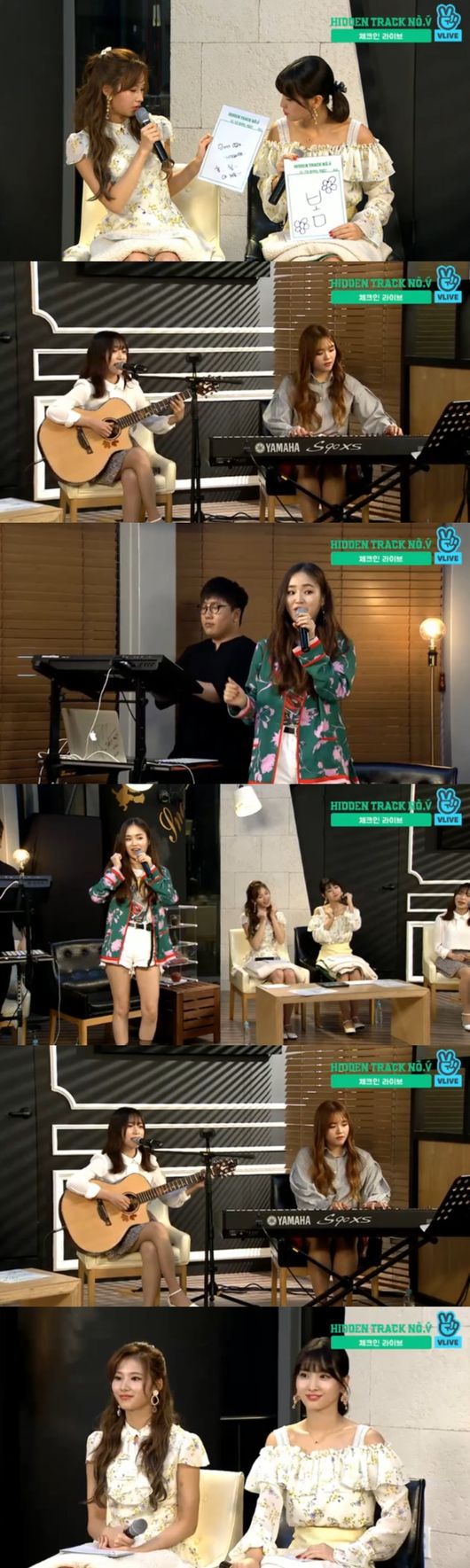 20일 오후 방송된 포털사이트 네이버 V라이브 ‘Hidden Track No.V TWICE 모모,사나 X 새벽공방 X 애런 체크인라이브’에서는 6, 7월의 키맨 트와이스 모모, 사나가 라커 새벽공방, 애런을 소개하는 시간을 가졌다.