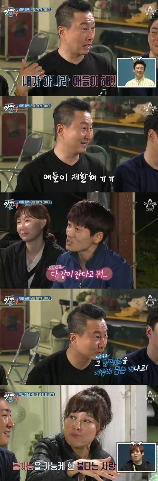 주영훈은 "아이를 더 낳고 싶어도 아이들과 함께 자니까, 아이들이 제한을 한다"고 한다. 이에 박지헌은 "우리도 같이 잔다"고 말했다.