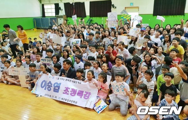 이승엽 이사장은 21일 오전 대구 수성구 동일초등학교(교장 채영기) 2층 동진관에서 열린 명사 특강에 나섰다. 이승엽 이사장이 무대에 오르자 함성이 쏟아졌다. "아저씨가 누군지 아느냐"고 묻자 학생들은 일제히 "네 알아요"라고 대답했다.