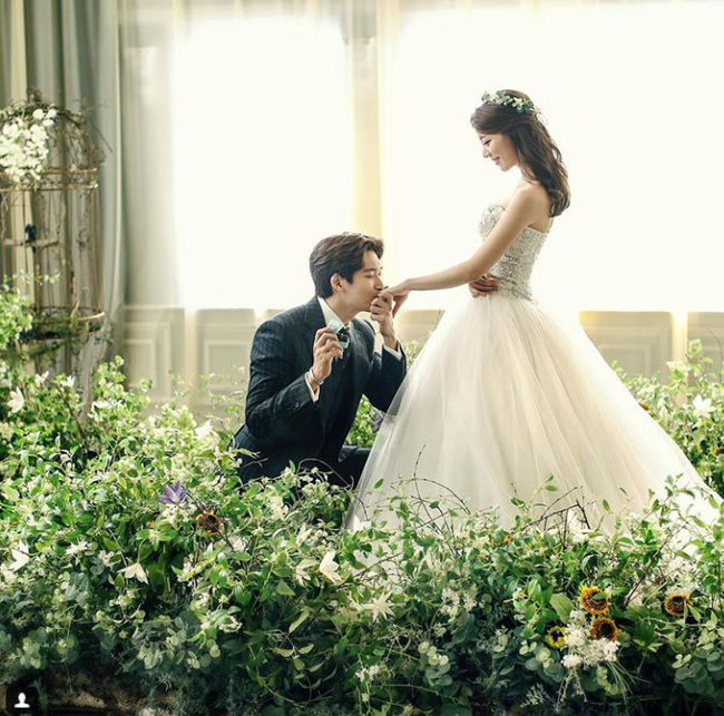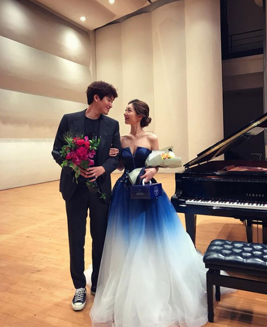 특히 아내 앞에 무릎을 꿇고 손등에 입을 맞추는 웨딩화보에는 "꽃길만 걷게 해줄게요"라는 약속을 했고, 최근 올린 피아노 연주회 사진에는 "나의 인어공주"라고 전했다. 두 사람은 서로를 마주보며 다정한 포즈를 취하고 있다. 누가 봐도 행복함 가득한 신혼부부다.