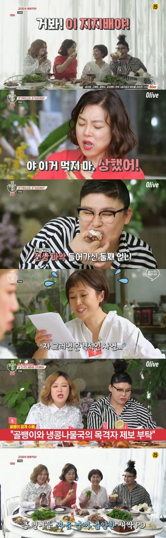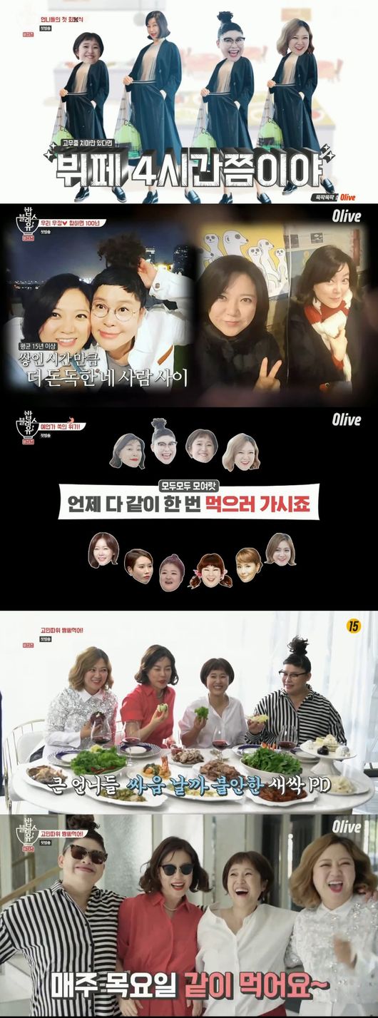 21일 첫 방송된 올리브 '밥블러스유'는 전국에서 배달된 사소한 생활밀착형 고민들을 최화정, 이영자, 송은이, 김숙이 함께 공감하고 맞춤형 음식을 추천하면서 위로해 준다는 콘셉트다. 이른 바 신 개념 푸드테라픽 먹부림+고민풀이 쇼다.