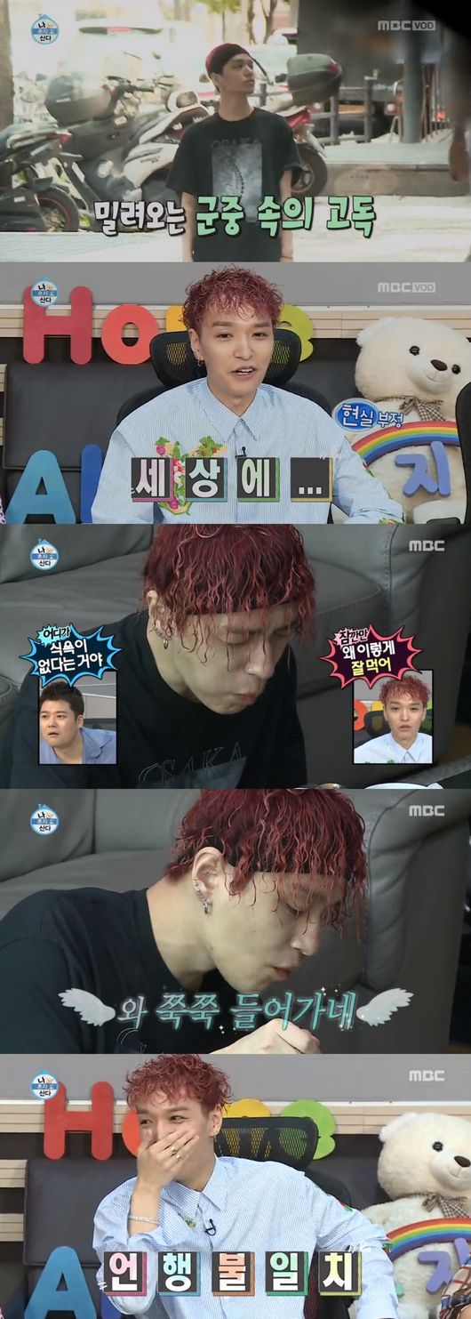 씻고 집에 돌아와서도 쌈디의 리얼 라이프는 계속됐다. 식사하기 위해 쌈디는 배달음식을 시키려고 했는데 음식을 고르는 데만 한참의 시간이 필요했다. 쌈디는 낙지소면을 시켰고 그 자리에 앉아 정신없이 식사했다. 앞서 식욕 포함 모든 욕구가 사라졌다고 한 것과는 다른 모습이었다. 쌈디는 “맛있다”고 감탄하며 낙지소면을 먹었고 “쭉쭉 들어간다”면서 차지게 먹방을 선보여 모두를 웃게 했다.
