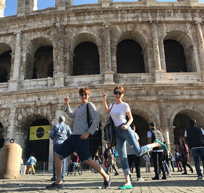 공개된 사진 속 정겨운과 그의 아내는 익살스러운 포즈를 취하며 둘만의 여행을 만끽하고 있는 모양새다. 티에 청바지만 매치를 했을 뿐인데도 우월한 비주얼을 자랑하고 있는 두 사람이다.