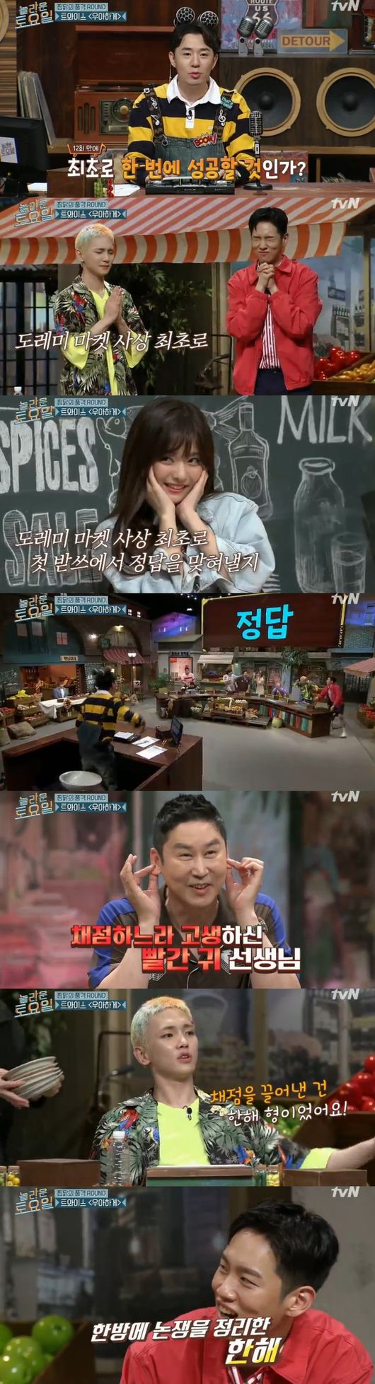 한번에 성공하기 위해 앞 가사 정보힌트를 들었고, 갈리는 의견 앞에서 다수결로 의견을 모았다. 가사 하나하나 음미하며 장면을 유추했고, 문맥 신인 신동엽이 도전, 치열하게 도전하던 중, 한마디 하지않던 한해가
