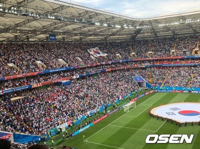 이날 경기는 한국이 멕시코에 1-2로 패했다. 손흥민이 후반 추가시간 골을 터뜨렸지만 승패를 뒤집지 못했다. 한국은 조별리그 2패로 사실상 16강 진출이 좌절됐다. 이 때문인지 이날 붉은악마의 함성과 응원은 더욱 애절하게 들렸다.