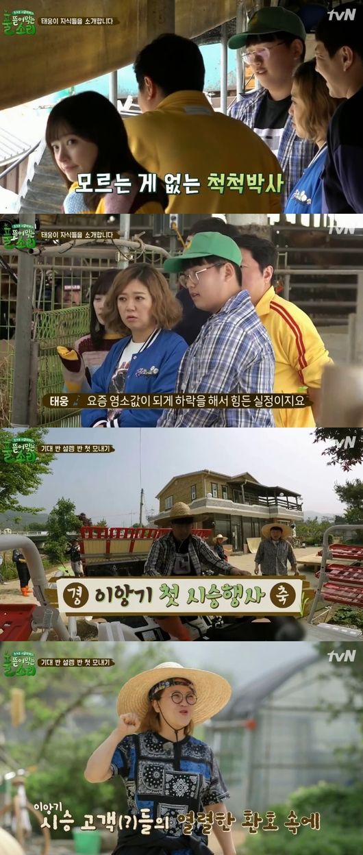 25일 첫방송된 tvN '풀 뜯어먹는 소리'에서는 농사 체험에 나선 김숙, 정형돈, 송하윤, 이진호의 모습이 담겼다. 터미널에서 만난 4사람은 만나자 마자 분식집에서 잔치 국수를 먹으며 친분을 쌓았다.