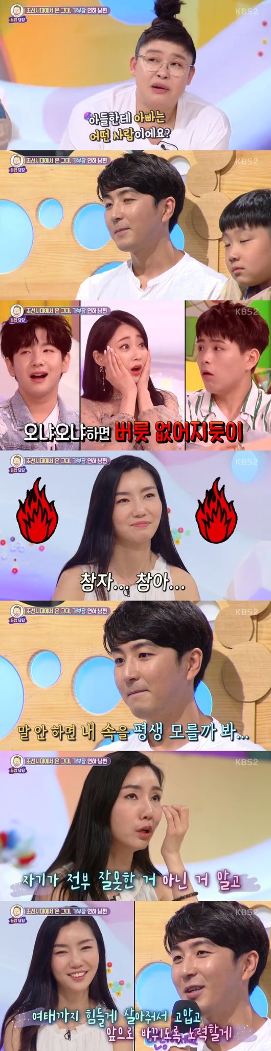 남편한테 MC들이 계속 이야기해도 남편은 문제를 인식하지 못했다. 이영자가 "벽하고 이야기해요? 나와서 씨름 한판 합시다 속이 터져서"라고 버럭했다.