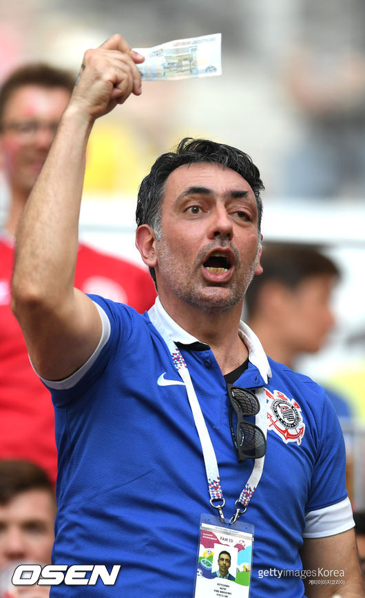 [사진] 위는 프랑스-덴마크 양 팀에 지폐를 들어 항의하는 관중. ⓒGettyimages(무단전재 및 재배포 금지)