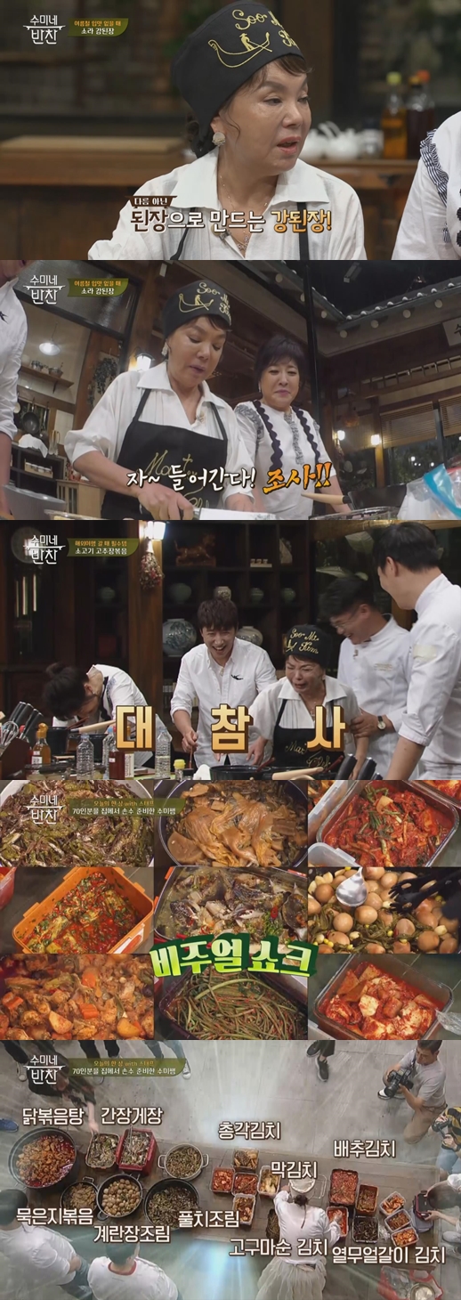 한편, 주변 지인들을 위해 음식 장만하는 것이 일상의 즐거움이라는 김수미의 따뜻한 마음은 ‘수미네 반찬‘ 녹화장에서도 이어졌다. 김수미는 이전 방송에서 공개된 묵은지 볶음과 간장게장, 당일 공개된 풀치조림을 비롯해 닭볶음탕과 장조림, 각종 김치 등을 새벽부터 손수 준비해 현장에 있는 70여명의 스태프들에게 대접한 것.