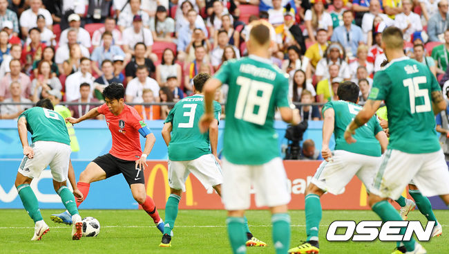 한국은 27일(한국시간) 밤 11시 러시아 카잔의 카잔 아레나서 독일과 2018 러시아 월드컵 F조 조별리그 최종 3차전 전반을 0-0으로 마무리했다. 국제축구연맹(FIFA) 랭킹 57위 한국과 1위 독일의 다윗과 골리앗 싸움이다.