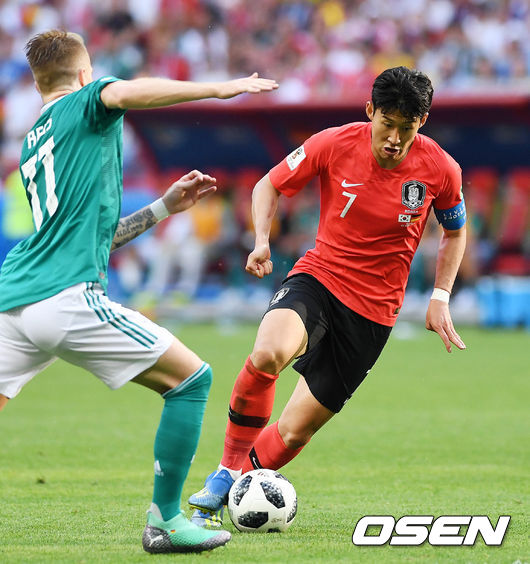 손흥민은 27일(이하 한국시간) 러시아 카잔 아레나에서 열린 ‘2018 러시아 월드컵 조별리그 F조’ 독일과의 마지막 경기에 주장 완장과 함께 출전했다. 이날 부상으로 빠진 기성용을 대신해 주장의 중책을 맡은 손흥민은 최전방에서 고군분투했다. 그리고 팀의 극적인 2-0 승리와 함께 했다.