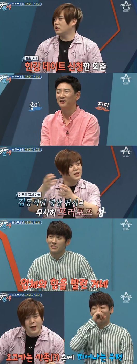 문희준이 결혼 하루 전날 프로포즈를 했다고 털어놨다. 이에 반해 홍지민은 정식으로 프로포즈를 받지 못했다며 서운한 속내를 전했다.