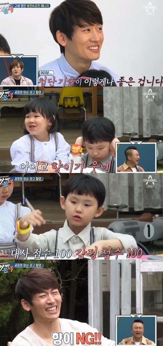 박지헌은 아이들과 광고 촬영을 하게 됐다. 딸 향이와 아들 의찬이와 함께 한 광고 촬영. 하지만 카메라 앞에서 아이들이 연기를 하기란 쉽지 않았고 결국 향이는 눈물까지 터트렸다. 이에 반해 의찬이는 의젓하게 촬영을 잘 해냈다. 현장에서 빛찬이와 강찬이가 일일 매니저로 나서 두 동생을 돌봐 훈훈함을 자아냈다. 박지헌의 아내까지 합류, 가족 모두가 힘을 합해서 촬영을 무사히 마쳤다./rookeroo@osen.co.kr