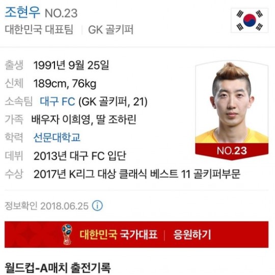 공개된 사진 속에는 조현우의 포털 프로필이 담겨 있다. 슬리피는 온라인상에서 조현우 닮은꼴로 화제를 모으고 있다.