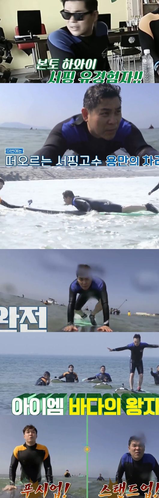 5명의 멤버들이 해변으로 나갔다. 서핑구멍은 박명수였다. 김용만은 과거 하와이에서 서핑 경험이 있다며 자신만만해했다. 김용만이 서핑을 시작했다. 힘차게 패들링을 했고 푸시업까지 성공했지만 스탠드업에서 실패했다. 김용만 심형탁도 서지 못하고 바다에 빠졌다. 막판 박명수가 서는 것에 성공해서 환호성을 받았다.
