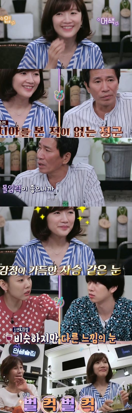 신정근이 장소연을 바라보며 "눈만봐도 무섭다. 몰입력이 좋으니까 빙의된 것 같기도 하다"고 말했다. 이에 신동엽이 "눈이 묘하다"고 했다.