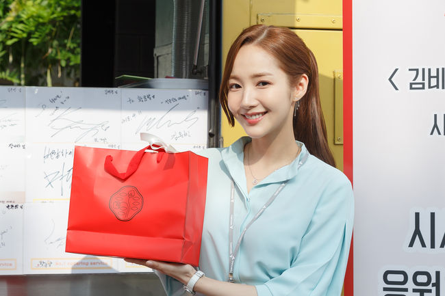 tvN 수목드라마 ‘김비서가 왜 그럴까’에 출연중인 박민영은 갑자기 더워진 날씨에 고생하는 스태프들과 출연진들을 위해 커피차와 달콤한 쿠키를 준비하고, 자신이 모델로 활동 중인 화장품 브랜드의 베스트 아이템을 직접 골라 선물했다.