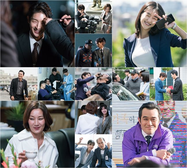 공개된 사진 속 배우들은 환한 미소를 지으며 촬영에 임하고 있는 모습. 배우들은 서로의 연기에 대해 이야기를 나누거나 소소한 장난을 치는 등 지친 현장의 기운을 북돋아주고 있는 것.